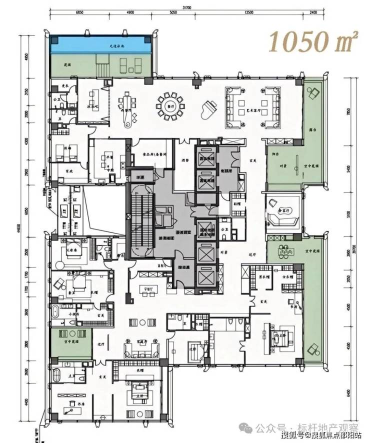 建面约500-700㎡,以及1050㎡顶奢大平层