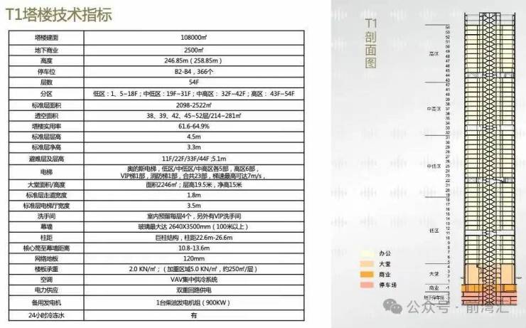 建筑面积:约11万㎡(5-54层办公)