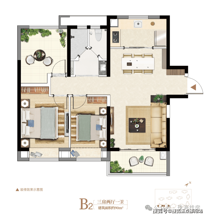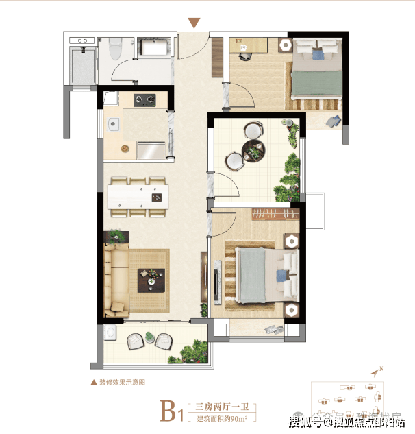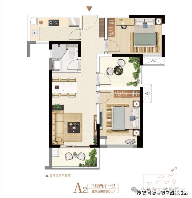 建面约80㎡精装三房,低总价,高品质。