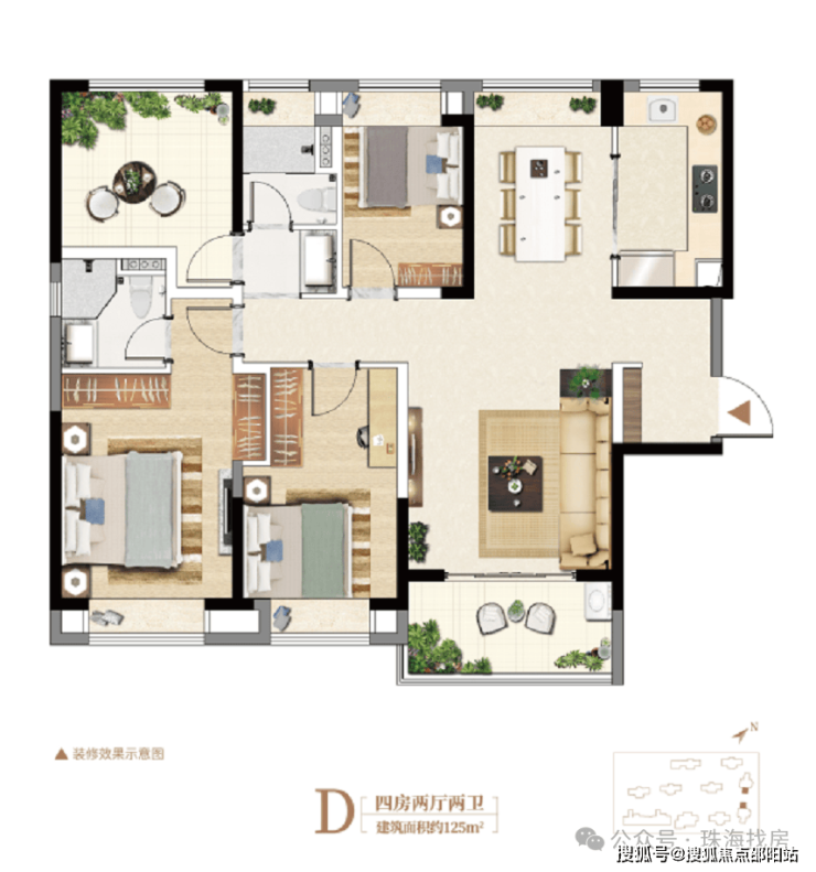 【约125平四房】