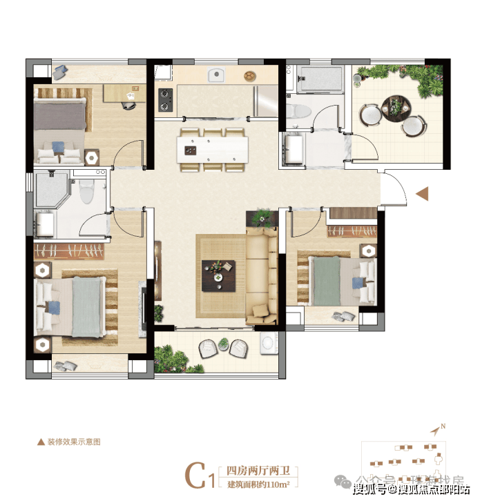 建面约110㎡精装奢阔四房