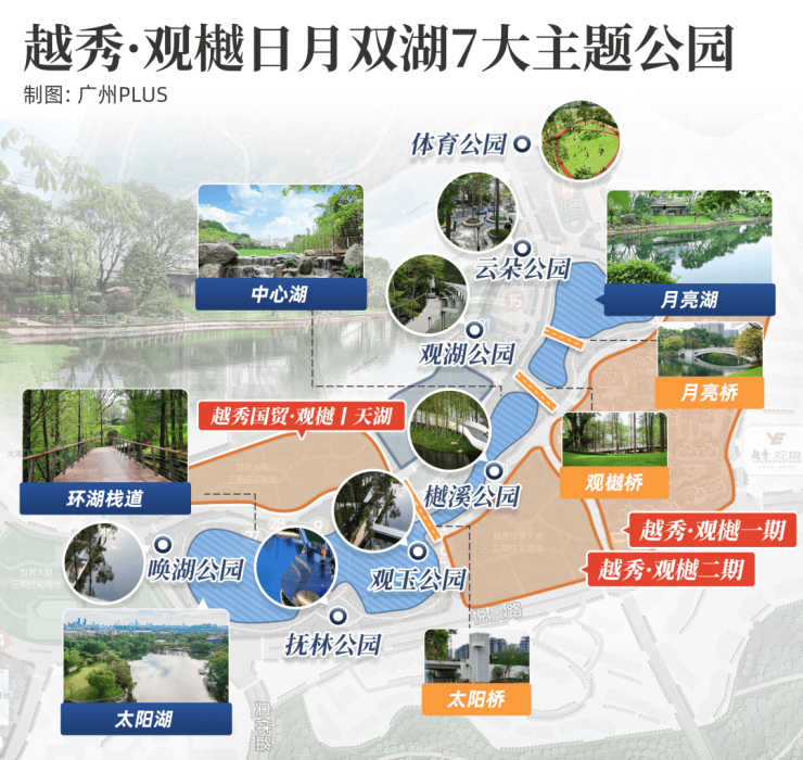 在社区内部,越秀·观樾坚持“配套先行”,打造广州首个“两湖一谷”大型社区。