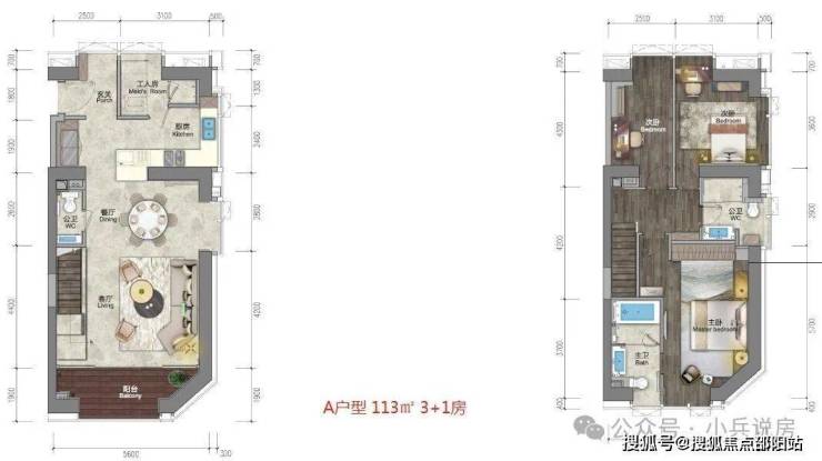 ★113㎡复式三房两厅三卫+工人房 南北通透三面景观,5.6米客厅与主卧开间,独具品位,尽享奢阔。