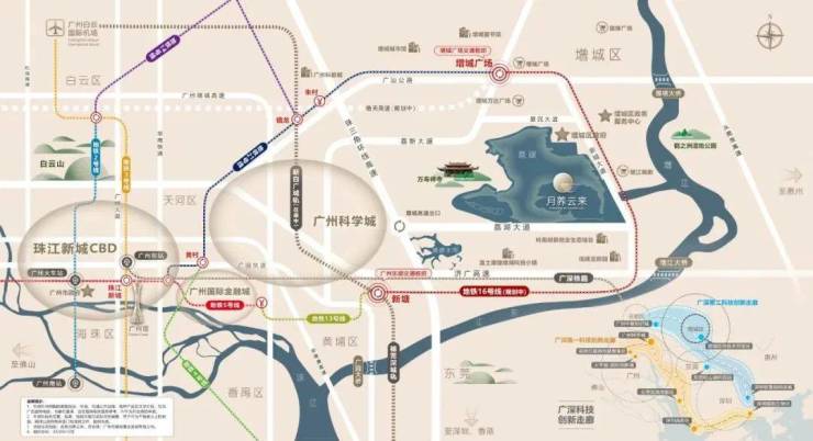 地铁:21号线4站到天河、家门口规划荔湖新城站(28号线和16号线交汇于此);