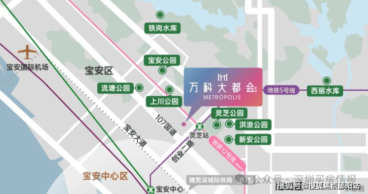 比如,深圳西部最大的市政公园——宝安公园、面积约12万方的艺术生态公园——灵芝公园,以及流塘公园、洪浪公园、上川公园、新安公园,都在项目周边3公里范围内。