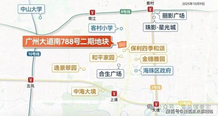 位置非常好,属海珠区府板块,紧邻新港路、新滘路主干道,地铁客村站+上涌站,而且,按规划地铁26号线大概率会有站点覆盖在地块附近,周边商业有合生广场、万达广场等成熟配套。