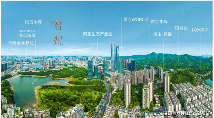 君粼近享银湖山、塘朗山两大山脉,揽民治、民乐、雅宝、南坑四大湖泊;