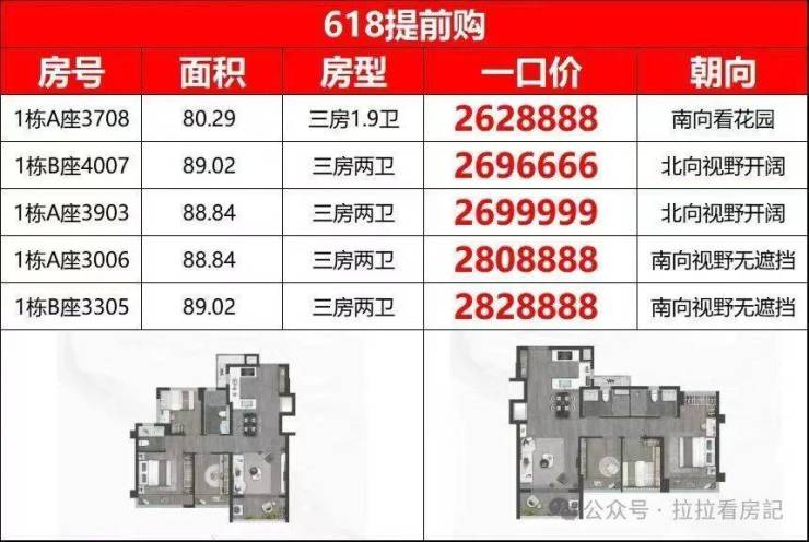 106㎡的4房2卫,折后总价407-410万/套,单价3.82-3.85万/㎡。