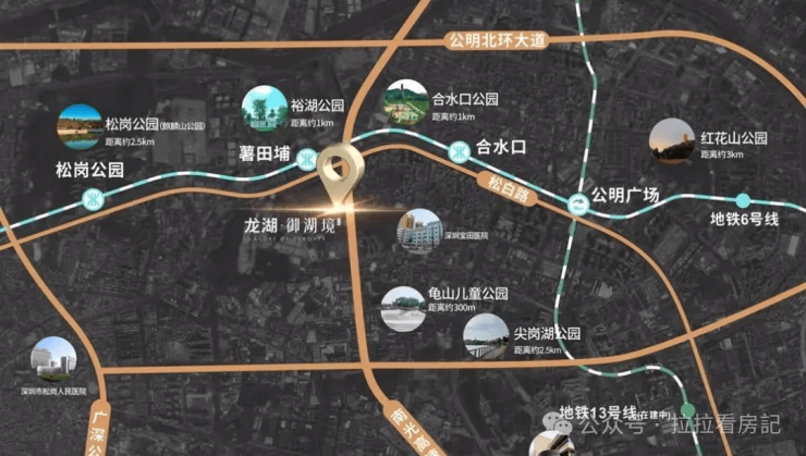 龙湖御湖境距离6号地铁线“薯田埔站”约300米,2站可到公明广场站换乘13号线,直达石岩,南山,3站可到松岗站换乘11号线,直达宝安,南山,前海。