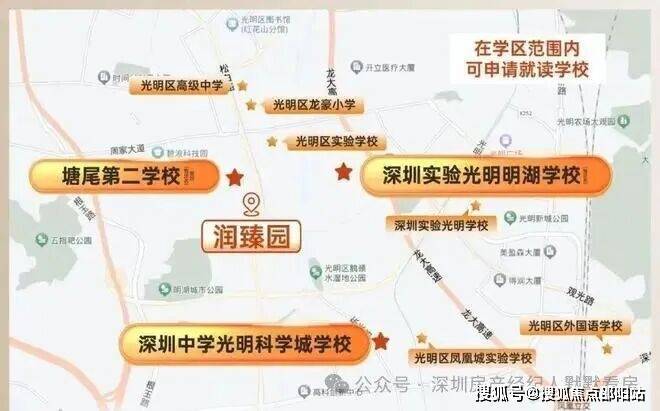③ 教育:社区内配置幼儿园,西北侧地块规划有九年一贯制学校(与项目一路之隔);大城规划3所九年一贯制学校,其中一期深圳实验光明明湖学校2025年9月已开学(信息来源:深圳光明学校公众号);项目3公里范围内涵盖深圳中学光明科学城学校、深圳市光明实验学校等;