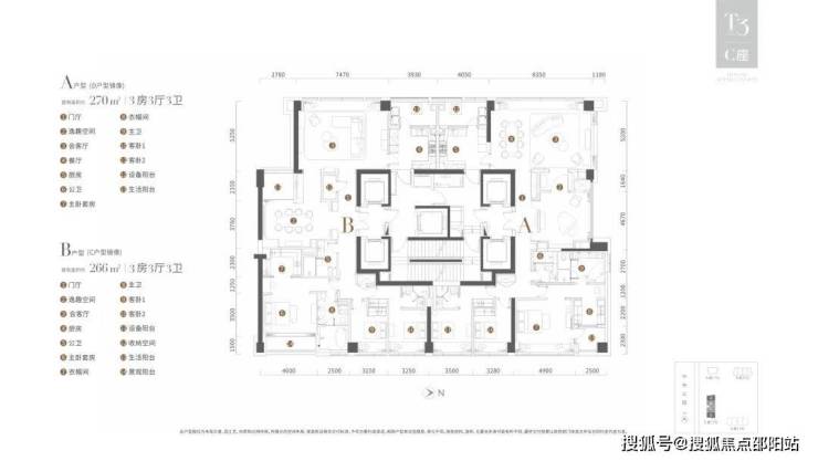 B/C户型:330m²四房三厅四卫,南北通透(卧室全南向)