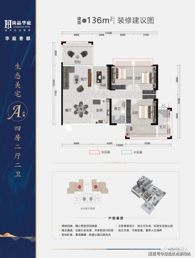 华庭香郡以建面约109㎡—136㎡的户型为主,户户采用南向大阳台设计,明厨明卫,景观飘窗,保证最优通风采光,尺度开阔,将居家的私密性与景观的开敞性充分融合,营造出城市难以复制的艺术居家空间。户户亲临湿地公园,每一扇窗户都向着公园呼吸,悦尽四季美景。