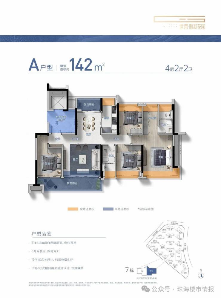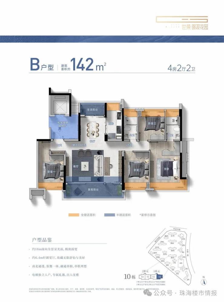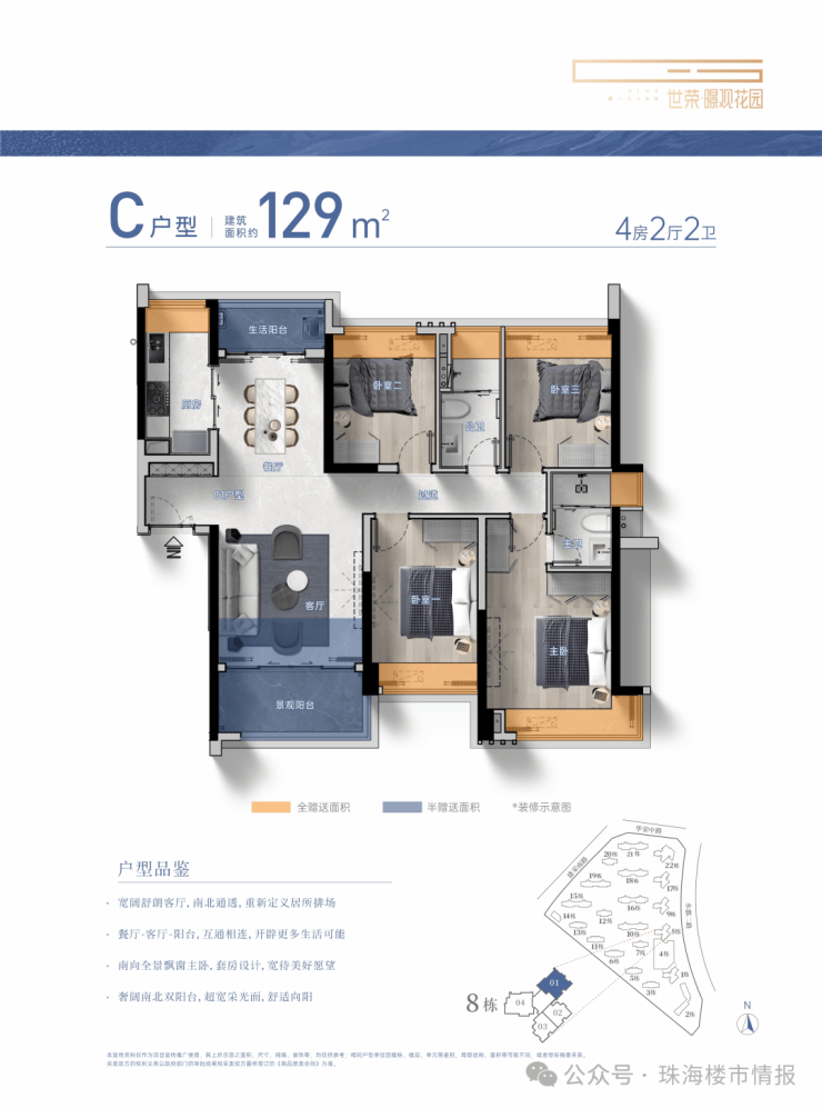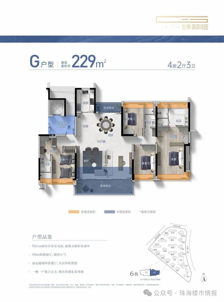 建筑面积约104-229㎡3-4房美学平层,着落其间