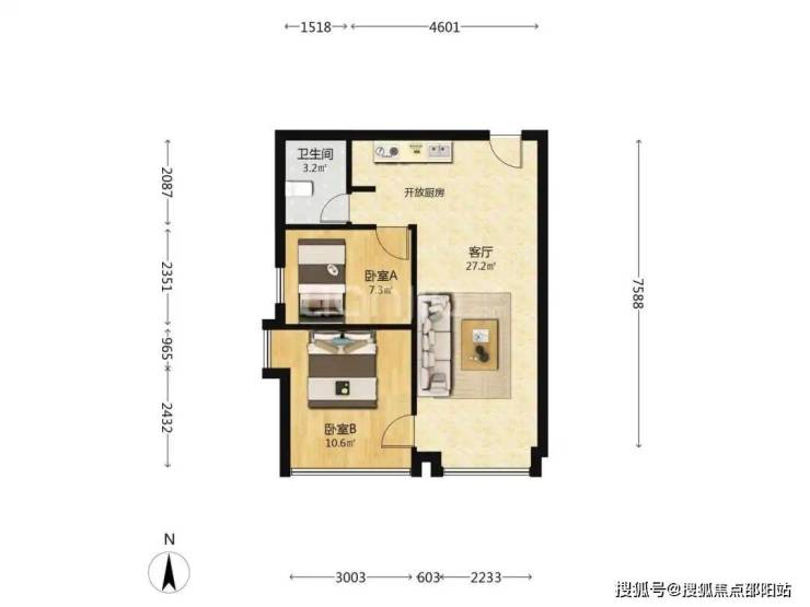 两室一厅,暗卫,没有阳台,开放式厨房;精装修,基本拎包入住,36.61㎡,挂牌499万。