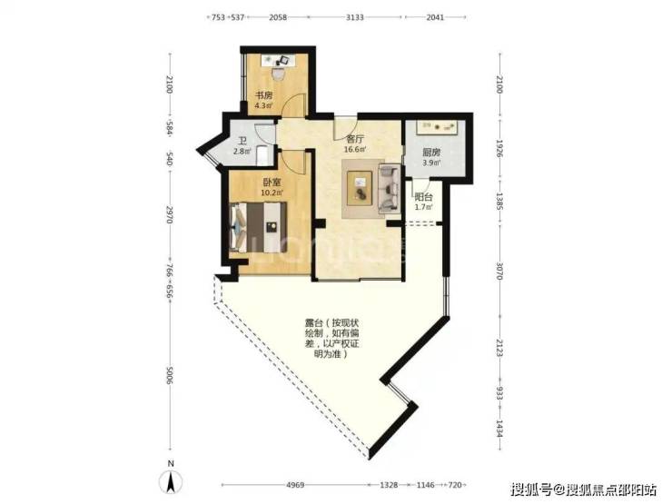 这套两室一厅,46.6平(没算露台),598万,5楼。