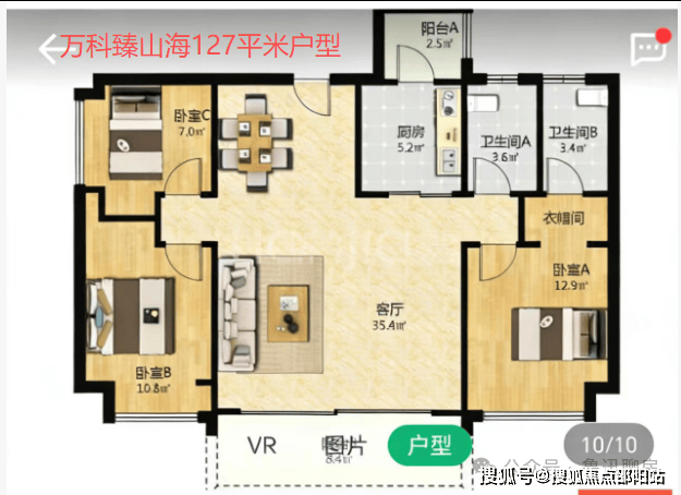 3-4房2卫 127-131㎡ 2梯3户 1160-1400万 东南向,5.6-5.8米大面宽客厅,2.2米进深阳台