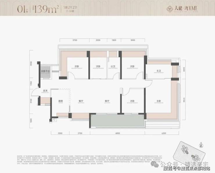 139㎡五房则面向高端改善家庭,采用横厅设计,6.8米开间阳台带来巨幕视野。主卧面积约22㎡,配备双台盆卫浴、浴缸和步入式衣帽间,尊享酒店式生活体验。