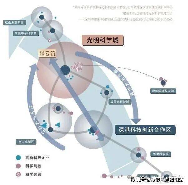 光明南接深圳南山科技园,北联东莞松山湖,向上链接东莞水乡新城和广州大学城,是粤港澳大湾区的重要战略节点,占据中国科创发展大动脉;汇聚中山大学深圳校区、国家超算中心等世界一流科创资源,打造世界一流科学城