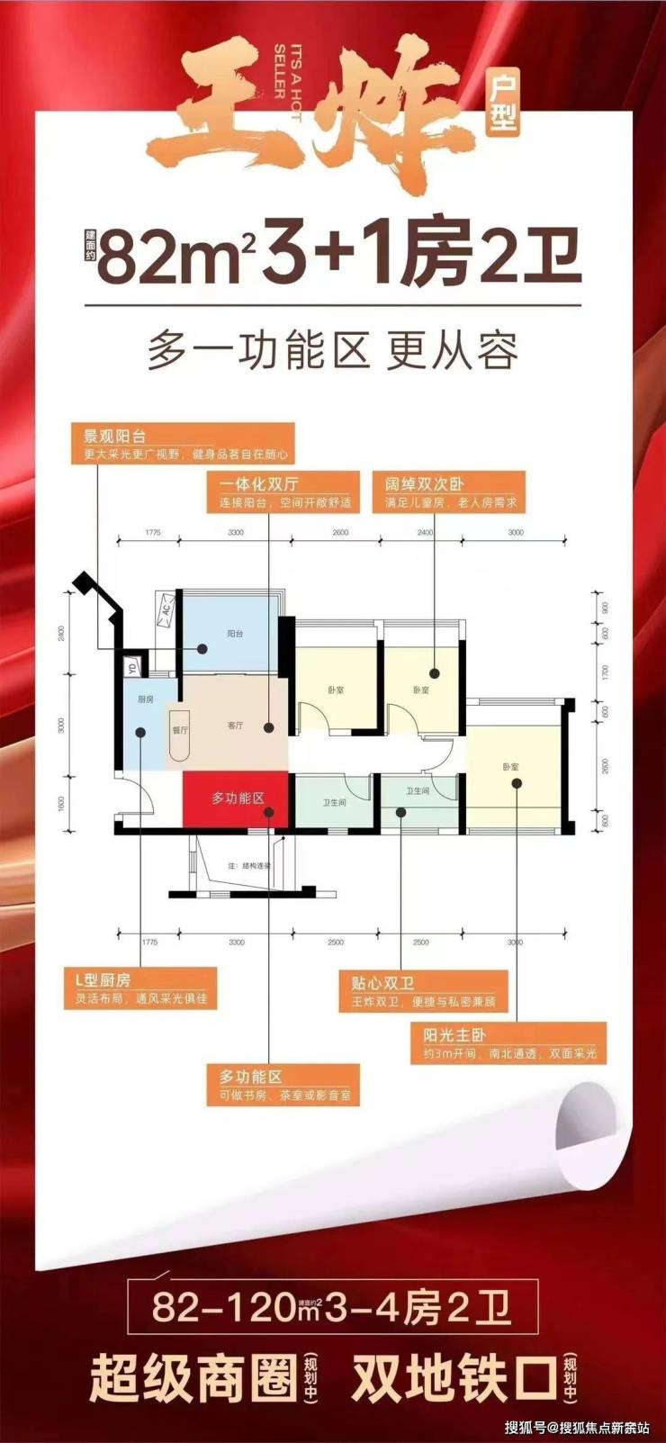 建面约82平3房2卫户型超实用,刚需可一步到位。