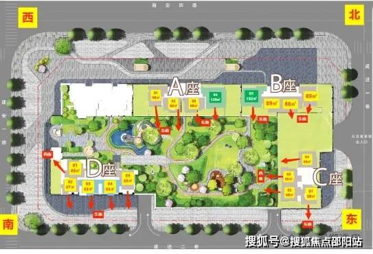 规模:占地1.4万㎡,总建面10.41万㎡,4栋住宅(A-D座),667户,车位752个(1:1.12)1