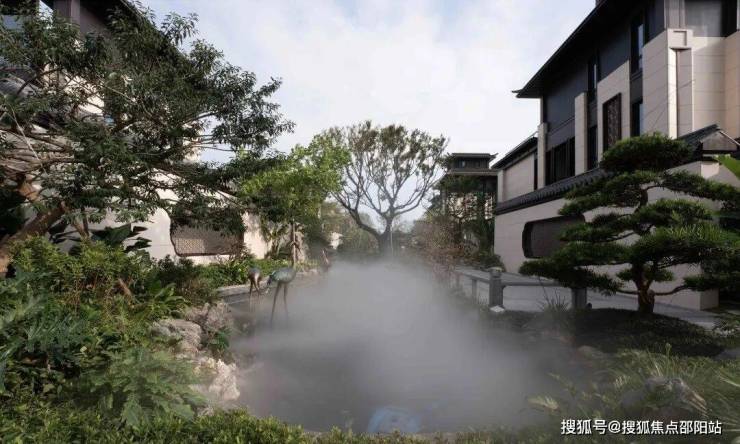 园林选用大树、特选老桩等在入园提升价值感,厚重的额绿荫结合热带。风情打造岭南特色诗意情境,凸显典藏级府邸厚重、尊贵的底蕴。