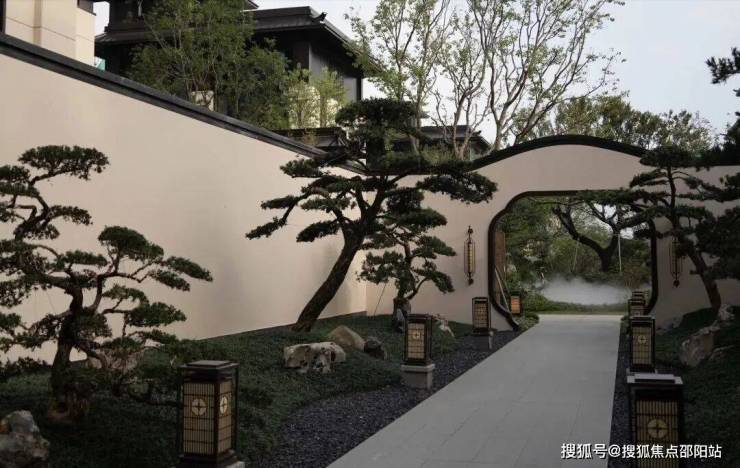 王府大门形制,结合现代工艺与材质,以对阵高墙关满园春色,打造尊贵礼序感府邸入口前庭;