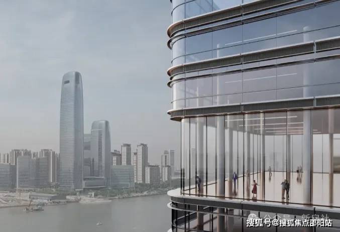 外立面采用木色陶板与全景玻璃幕墙,以“曲水流觞”的涟漪造型呼应珠江文脉,同时融入垂直生态理念,打造空中绿岛与可呼吸的建筑肌理。