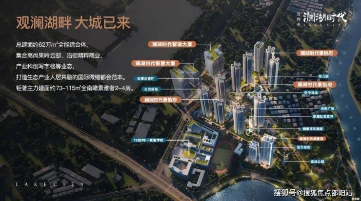 澜湖时代,由深物业集团开发,项目总占地面积约6.8万㎡,总建筑面积约62万㎡,计容建筑面积约43万㎡,共分3个地块开发,总规划约2700户,将建成集产业生产研发、住宅、商业街区于一体的产城综合体,是龙华北片区新的大型标杆项目。