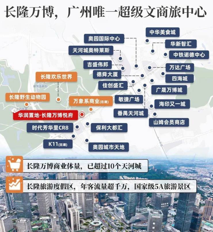 CBD的配套水平名副其实,拥有整个番禺最好的资源,长隆万博已开业12座商业体,包括四海城、番禺万达、番禺天河城等,商业体量已超过10个天河城