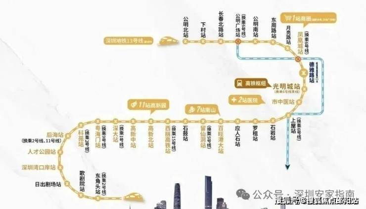 交通配套:观玥名邸家门口就是13号地铁线“德雅路站”,以前的同观路站已经改名,最高时速100公里,预计2025年开通运营,1站可到光明城站,换乘6号线/光明城高铁站,3站可到石岩,7站到西丽,8站到留仙洞总部基地,11站到南山高新园。