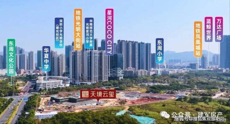 振业天境云玺地处光明区核心,坐落光明中心区与光明科学城交汇处,承接两大板块发展红利,隶属东周社区核心板块,紧邻华夏中学。临近地铁6号线光明大街站,可换乘13号线直达南山科技园,自驾衔接龙大高速、南光高速,便捷通达福田、南山核心,通勤与发展潜力兼具。