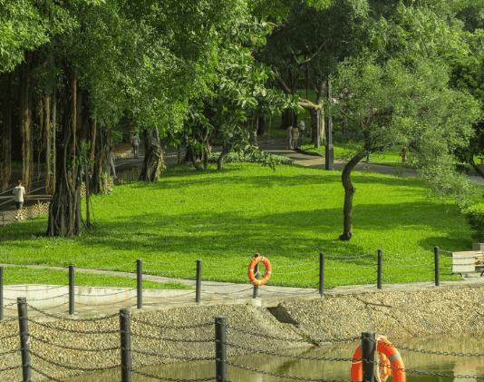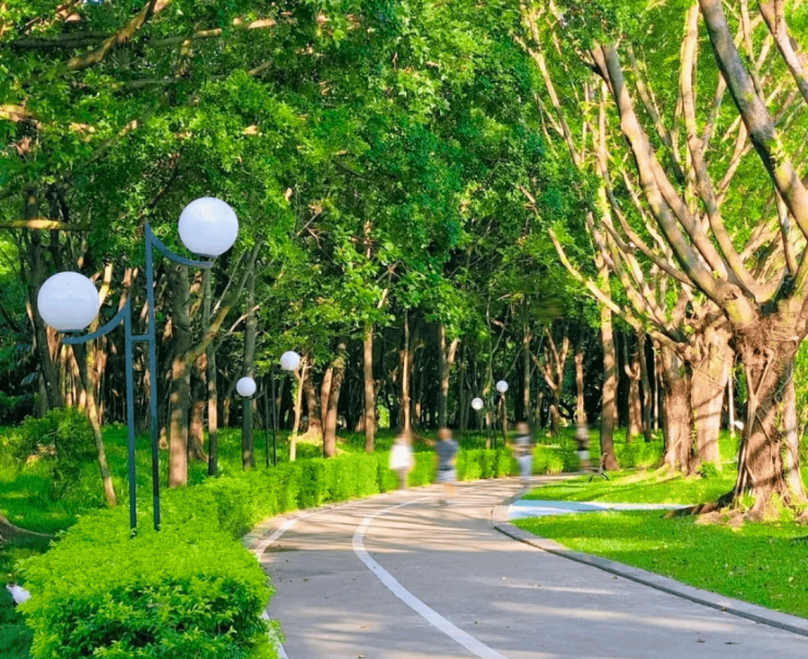 清晨,不妨先下楼来个晨跑,穿梭在参天古木、绿草如茵、鸟语花香、湖光十色的绿意盎然中,呼吸清新的富氧空气,开启活力满满的一天。
