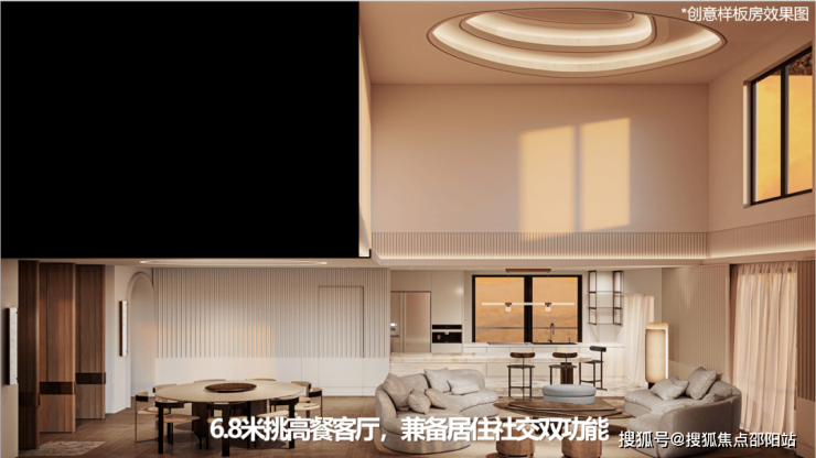 约3.4米层高、约6.8米挑空餐客厅