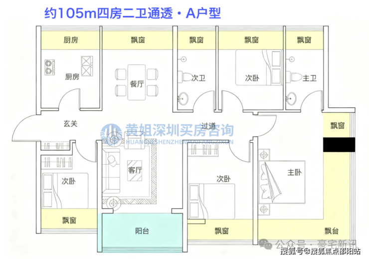 项目规划为纯四房产品,户型面积约105-188㎡,全部为精装修交付。