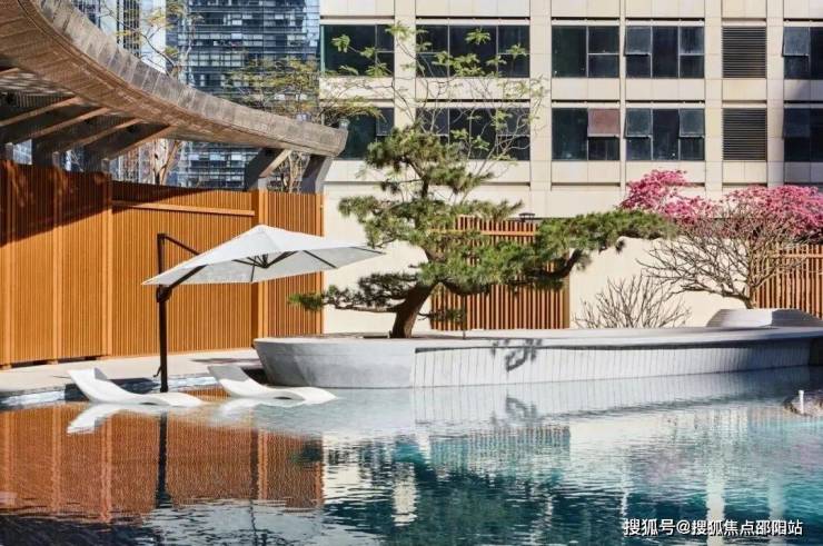 与此同时东面围成的广阔无边际泳池区域,形成“背有靠山,前有活水”的格局。▽