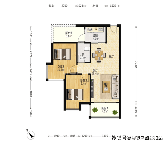 实用率高达90%。客厅与餐厅无缝相连,更显空间开阔双阳台设计,极大提高室内的通风和采光
