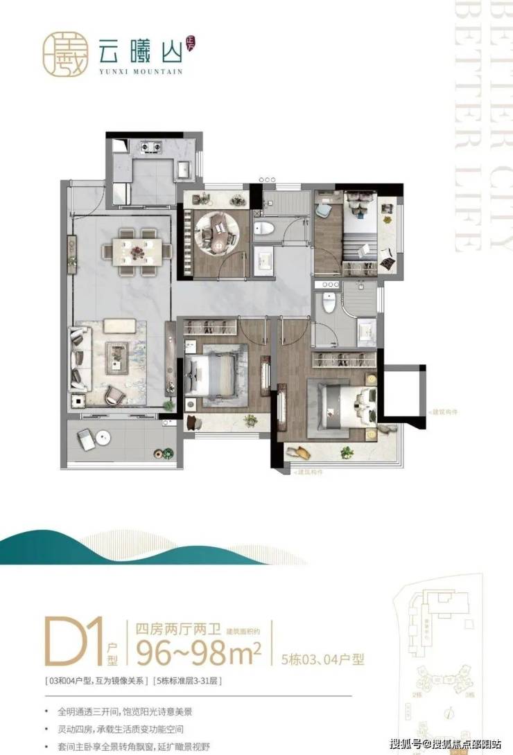 — 约95-120㎡四房一步到位—云曦山匠造约95-120㎡四房空间极致利用的灵动户型,精挑国内外一线装修品牌,舒适备至恭候拎包入住。