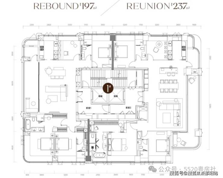 「后海招商玺」此次首推1栋小高层住宅,2T2户,专梯入户,户型为建面约197-237㎡的四房大平层。