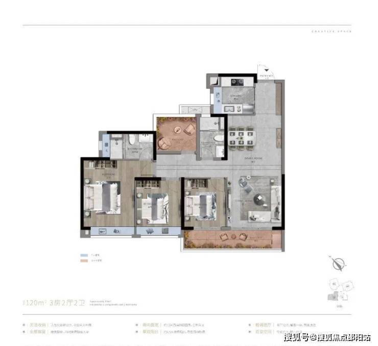 • A+健康居住家:配置景观大阳台、U型大厨房、贴心大玄关、品质系统门窗、中央空调、智能生活,居住更舒心
