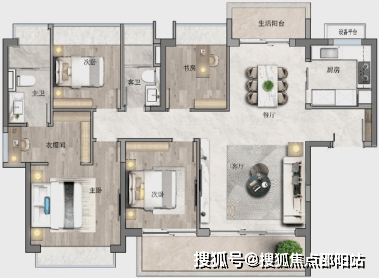 约143㎡四房两厅两卫:双阳台设计、南向超7米阳台、南向主卧设计!