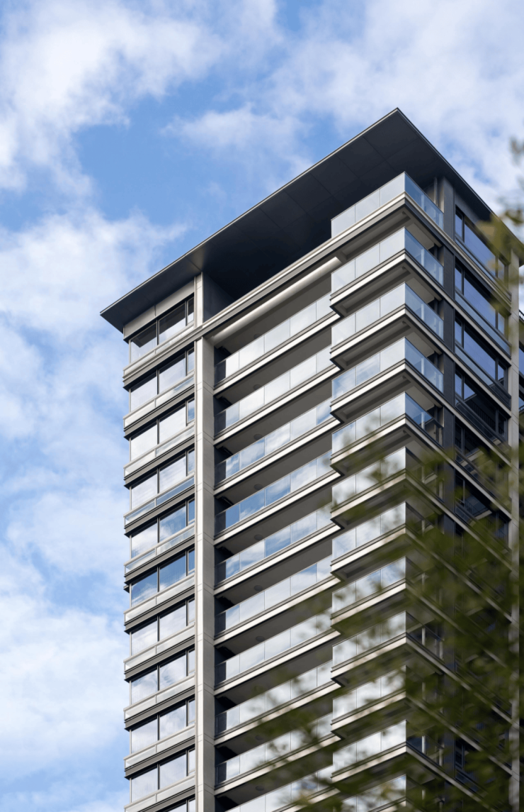 外立面由“金属铝型材+大面low-e玻璃”重新组合视觉符号,遵循几何美学,勾勒出精致的建筑线条和表层质感,彰显灰度的空间张力、明暗光影。