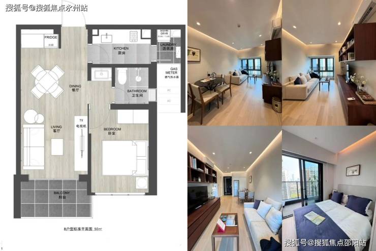 50㎡1房,带生活阳台,传统一房一厅布局