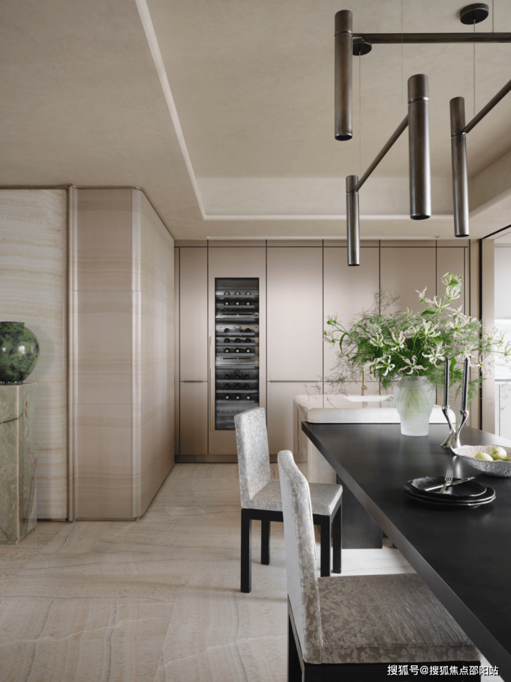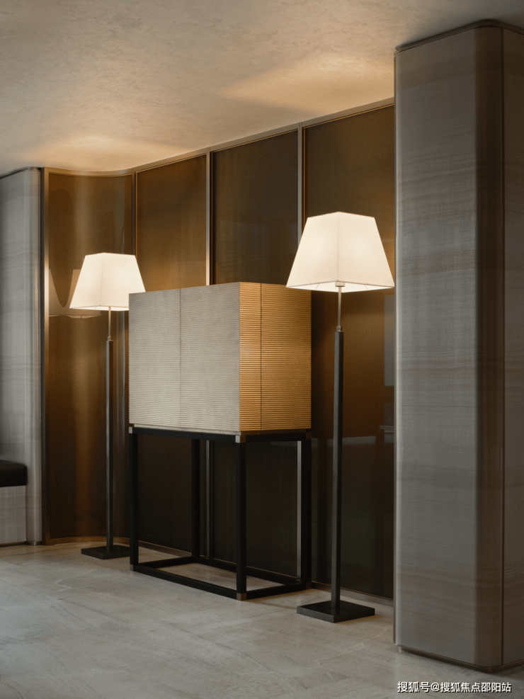 Armani Casa的设计将水墨刺绣融入到居室中,巧妙地布局,描绘着举杯谈笑、雅士风度的迎客之道。