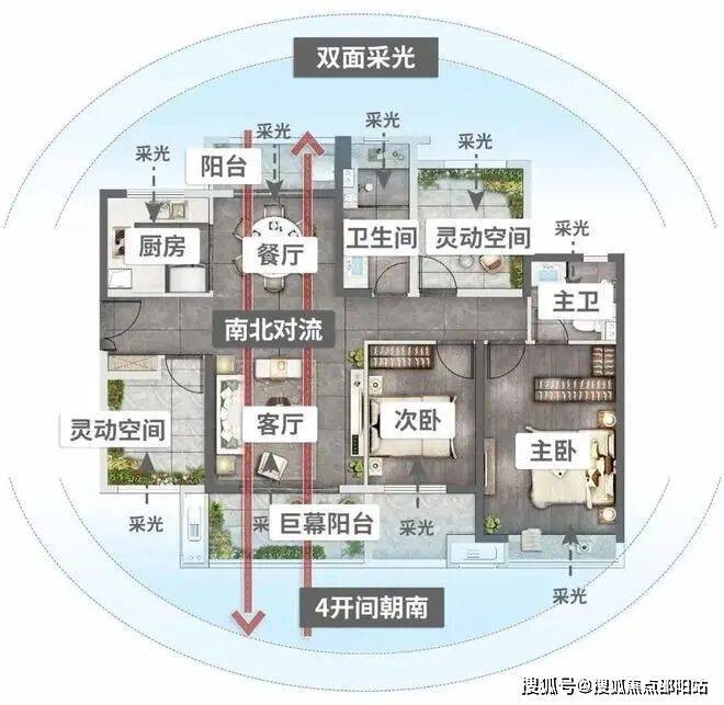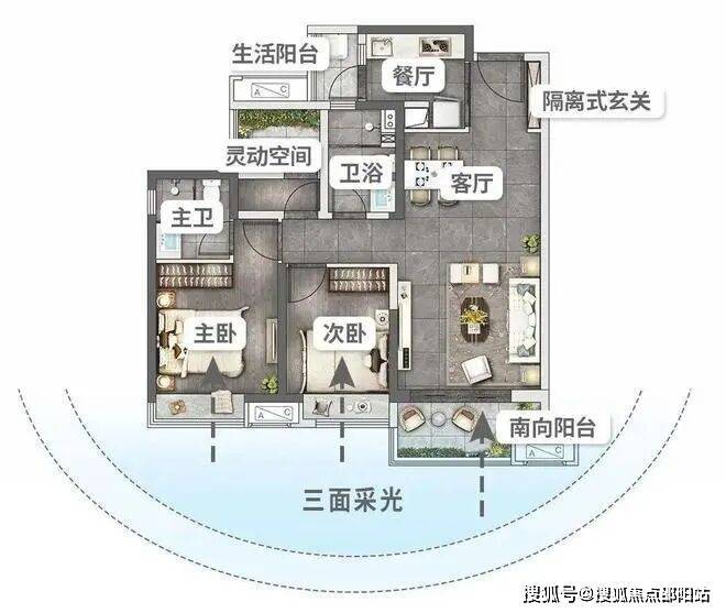 |建面约117平3+1户型设计另一个建面约117平竖厅3+1户型设计,布局传统,尤其方正。对喜欢大家庭、南向生活的买家来说,这个户型非常友好,从主卧到次卧,再到N+1灵动空间,四开间朝南,你与家人的每一个早晨,都能在和风旭日里睡到自然醒。
