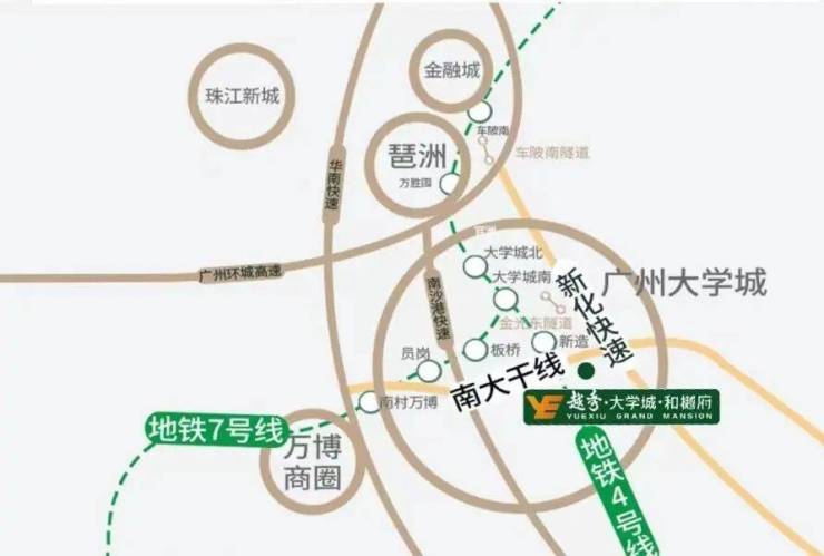 4号线地铁旁 1站大学城 4站琶洲 5站金融城
