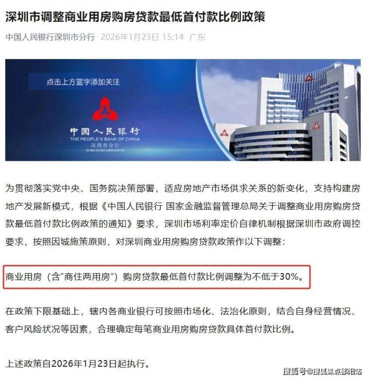 时代的注脚在2026年初骤然清晰:1月15日,商业房产首付降至30%的重磅新政落地 (*深圳地区于2026年1月23日起落地执行)。这绝非简单的金融调整,而是一道明确的战略信号——在不确定性弥漫的资本周期中,对核芯资产的配置,已从远见升格为紧迫的行动。一场关于“一线城市中芯硬核资产”的静默争夺,就此鸣枪。