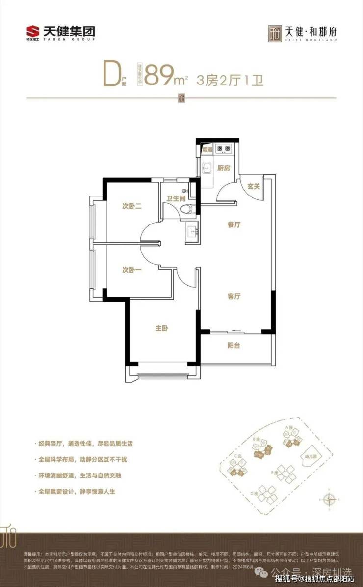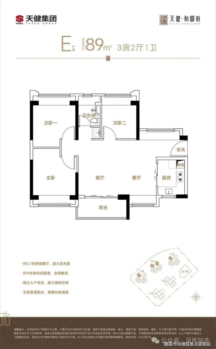 天健和郡府,匠心打造建面约89㎡ 超配3房,以方正格局、实用玄关、宽境阳台等设计巧思,为每一个家庭构筑品质舒居生活。