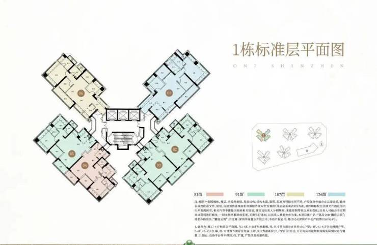 建面约81㎡41套;面约91㎡123套;面约107㎡42套;面约126㎡42套;