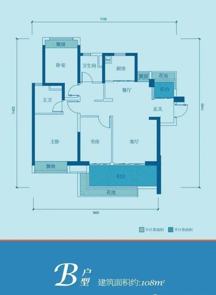 :同样是三房两厅两卫,户型方正,动静分区,保证了居住的私密性和舒适性。