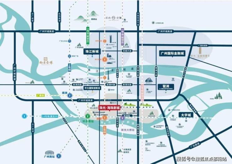 珠光海珠新城位于广州市海珠区南洲街道南洲路与大沙新村东街交叉口东200米处,广州地铁3号线与广佛线交汇的沥滘站附近;属珠江后航道北岸地区,占据广州中轴南端最后1公里,与珠江新城CBD、广州塔共同承载着广州12公里城市中心界面的重磅规划,广州中轴之上最后的塔尖置业珍稀之地。